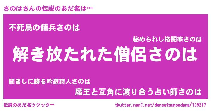 | ヒーロー風カッコイイあだ名 | 『幻影騎士サノ』『スーパーサノハ』 |