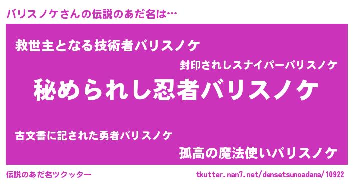 | ファンタジー風あだ名 | 『エターナルバリスノケー』『ゼバリトゥ』 |