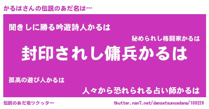 | ヘコむあだ名 | 『かるもー』『かるは(小並感)』 |
