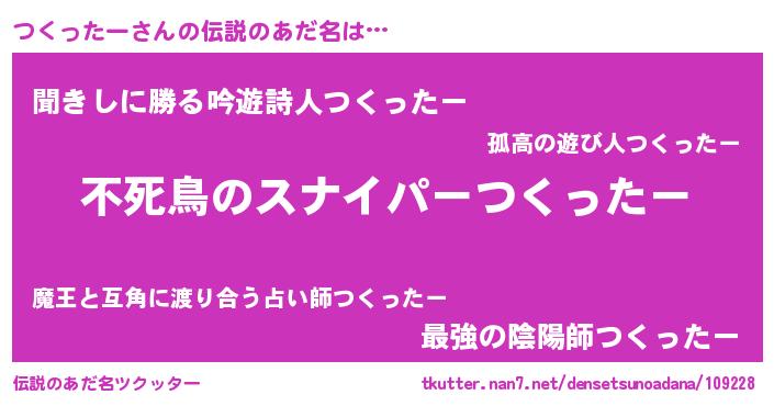 男性向けラノベタイトル風あだ名 | 『ツクッターアートオンライン』 |