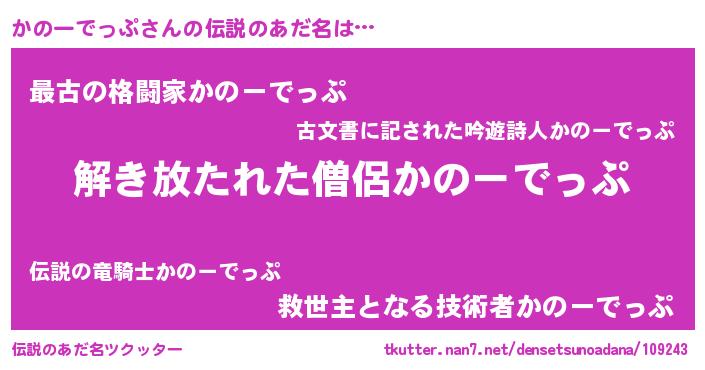 | 胡散臭い通販商品みたいなあだ名 | 『伝統あるネックレス…その名も「かのーでっぷ」』 |