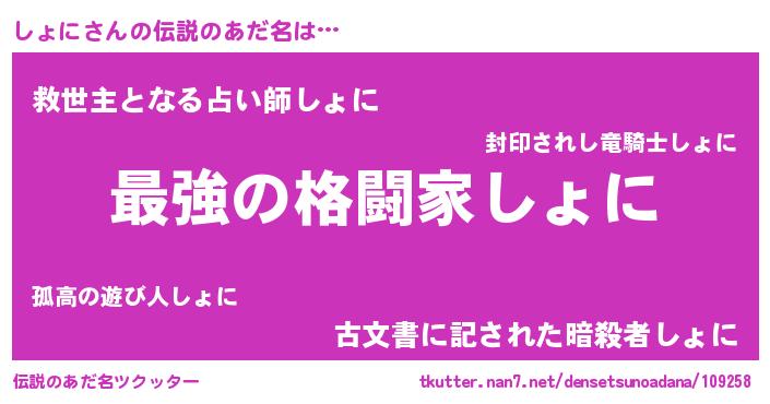 | 意味不明あだ名 | 『自称しょに』『しょにフォーエバー』 |