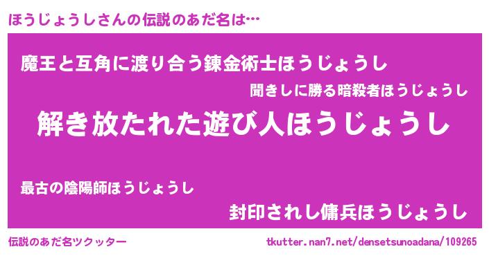 | ヒーロー風カッコイイあだ名 | 『魔戒騎士ホウ』『スーパーホウジョウシ』 |