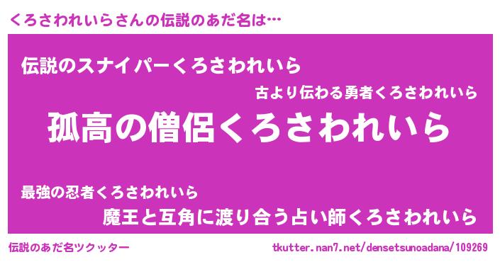 | 意味不明あだ名 | 『住所不定無職くろさわれいら(14歳)』 |