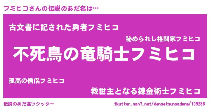 | 意味不明あだ名 | 『住所不定無職フミヒコ(8歳)』 |