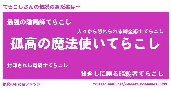 | ヒーロー風カッコイイあだ名 | 『超時空戦士テラコシ』『炎刃騎士テラ』 |