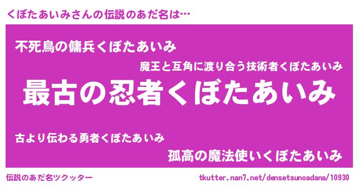 | 意味不明あだ名 | 『くぼたあいみフォーエバー』 |