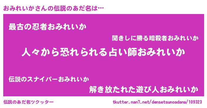 | 意味不明あだ名 | 『自称おみれいか』 |