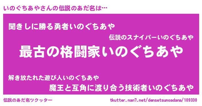 | ヒーロー風カッコイイあだ名 | 『ウルトラいのぐちあやマン』 |