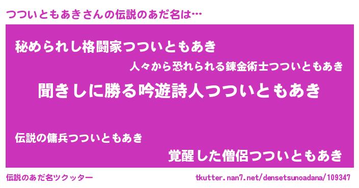 | 胡散臭い通販商品みたいなあだ名 | 『ガンによく効く高麗人参…その名も「つついともあき」』 |