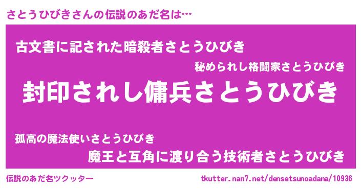 | 意味不明あだ名 | 『自称さとうひびき』 |