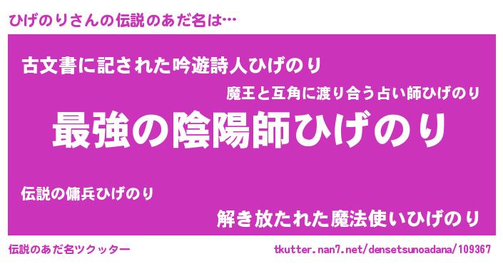 | 男性向けラノベタイトル風あだ名 | 『Re:ひげのりから始める異世界生活』 |