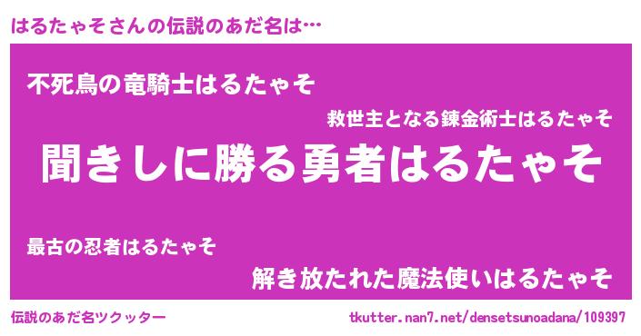 | 意味不明あだ名 | 『永久保存はるたゃそ』『自称はるたゃそ』 |