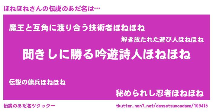 | ヒーロー風カッコイイあだ名 | 『仮面ホネダー』『ネオホネホネ』 |