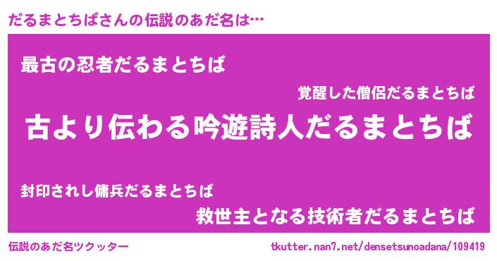 | ヒーロー風カッコイイあだ名 | 『ネオダルマトチバ』『仮面ダルダー』 |