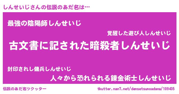 | 胡散臭い通販商品みたいなあだ名 | 『あなたにだけ特別に提供する限定10本のレアな日本酒…その名も「しんせいじ」』 |
