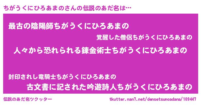 | 意味不明あだ名 | 『住所不定無職ちがうくにひろあまの(86歳)』 |