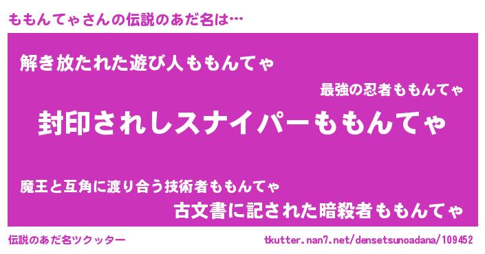 | ヒーロー風カッコイイあだ名 | 『究極戦士モモンテャ』『銀牙騎士モモ』 |