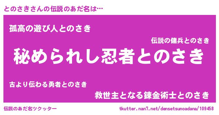 | 意味不明あだ名 | 『とのさきフォーエバー』『自称とのさき』 |