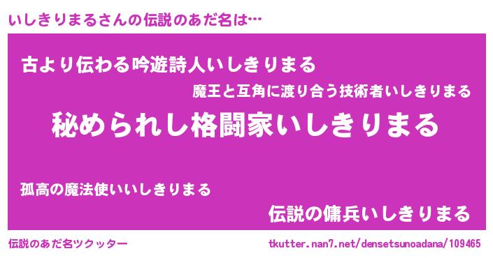 | ファンタジー風あだ名 | 『エターナルイシキリマルー』 |