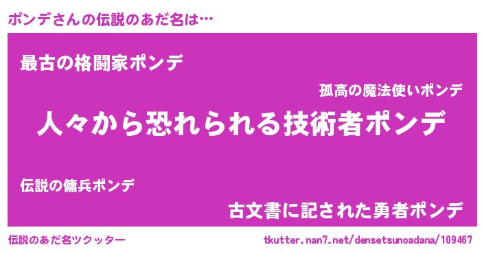 | ヒーロー風カッコイイあだ名 | 『仮面ポンダー』『天空の使者ポンデ』 |