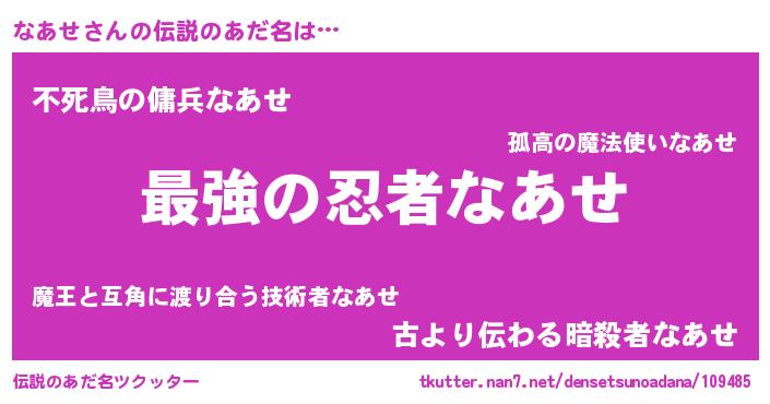 | 女子向けラノベタイトル風あだ名 | 『なあせの婚約者』『闇のなあせ』 |