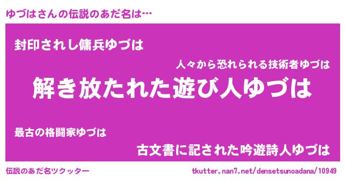 | 意味不明あだ名 | 『とにかく怪しいゆづは』『自称ゆづは』 |