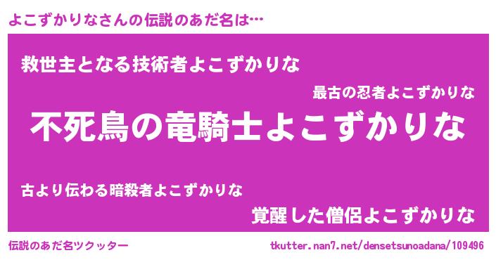 | 胡散臭い通販商品みたいなあだ名 | 『モテモテ間違いなしブレスレット…その名も「よこずかりな」』 |
