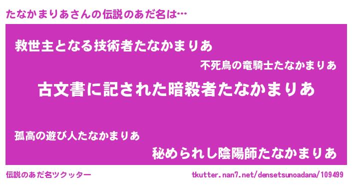 | 意味不明あだ名 | 『永久保存たなかまりあ』 |
