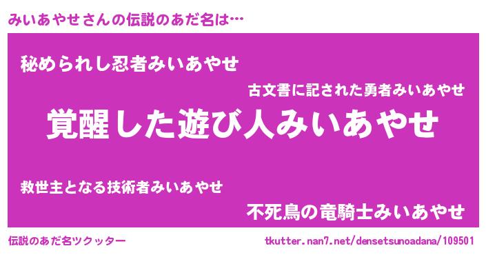 | 欧米人風あだ名 | 『ウサインみいあやせ』 |