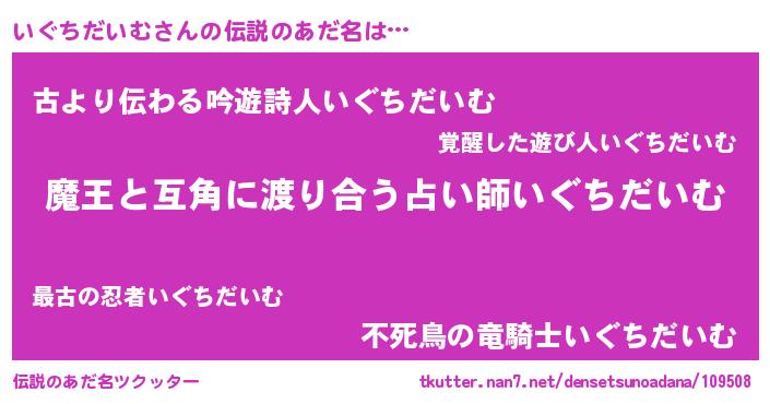 | ヒーロー風カッコイイあだ名 | 『愛の使者いぐちだいむ』『仮面イグダー』 |