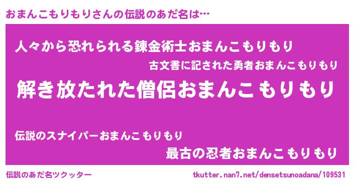 | 意味不明あだ名 | 『とにかく怪しいおまんこもりもり』 |