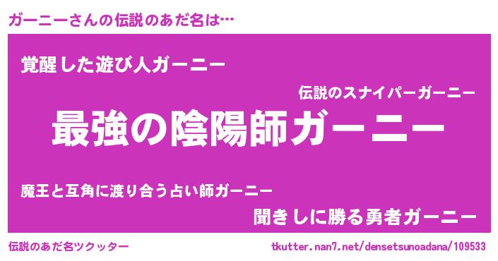 | ヒーロー風カッコイイあだ名 | 『究極戦士ガーニー』『暗黒騎士ガー』 |