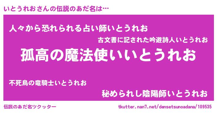 | 胡散臭い通販商品みたいなあだ名 | 『信頼と実績のサプリメント…その名も「いとうれお」』 |