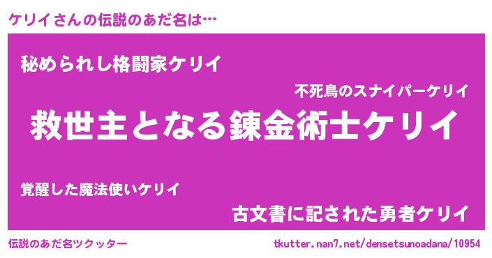 | ヒーロー風カッコイイあだ名 | 『慈愛の使者ケリイ』『ネオケリイ』 |