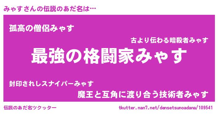 | ヒーロー風カッコイイあだ名 | 『最強戦士ミャス』『ウルトラみゃすマン』 |
