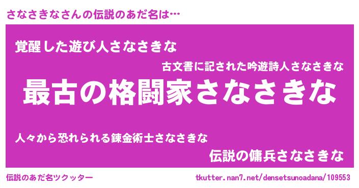 | ファンタジー風あだ名 | 『ゼサナトゥ』『エターナルサナサキナー』 |