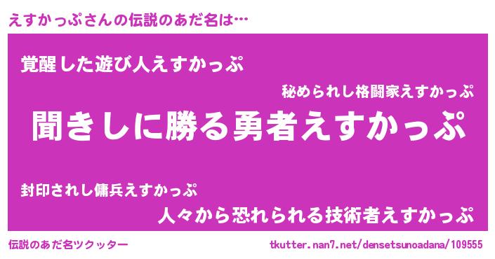 | ヒーロー風カッコイイあだ名 | 『ネオエスカップ』『仮面エスダー』 |