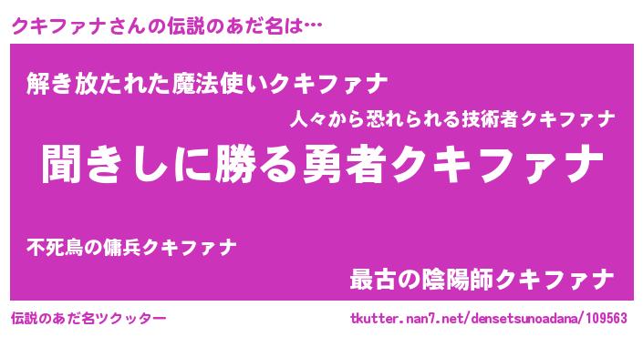 | 女子向けラノベタイトル風あだ名 | 『異世界で失敗しない100のクキファナ』 |