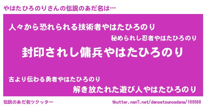 | 意味不明あだ名 | 『住所不定無職やはたひろのり(14歳)』 |