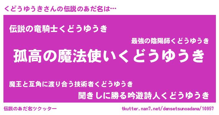 | 胡散臭い通販商品みたいなあだ名 | 『信頼と実績のサプリメント…その名も「くどうゆうき」』 |