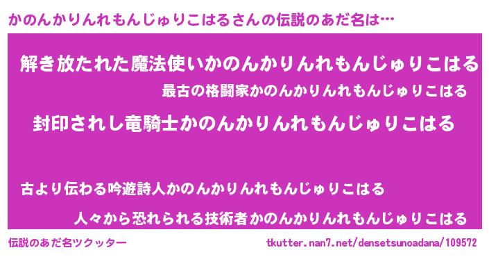 | 胡散臭い通販商品みたいなあだ名 | 『億万長者になれるブレスレット…その名も「かのんかりんれもんじゅりこはる」』 |