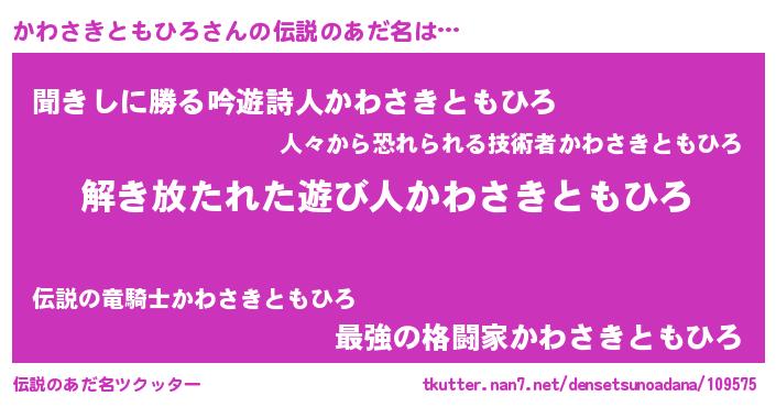 | 意味不明あだ名 | 『とにかく怪しいかわさきともひろ』 |