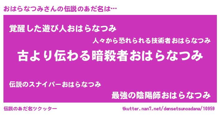| 男性向けラノベタイトル風あだ名 | 『おはらなつみという概念が存在しない退屈な世界 』 |