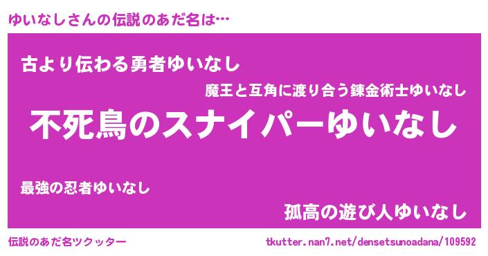 | 意味不明あだ名 | 『ペロリンゆいなし』『永久保存ゆいなし』 |