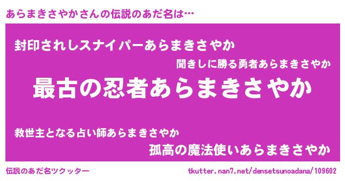 | 意味不明あだ名 | 『自称あらまきさやか』 |
