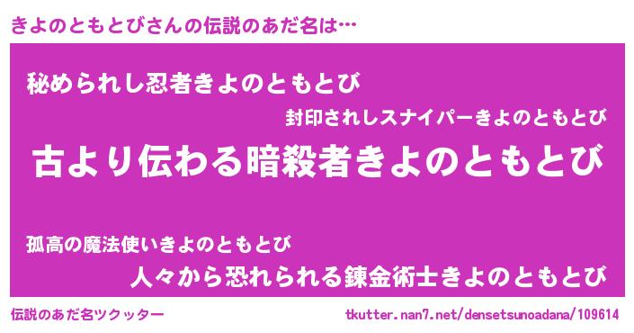 | 意味不明あだ名 | 『永久保存きよのともとび』 |