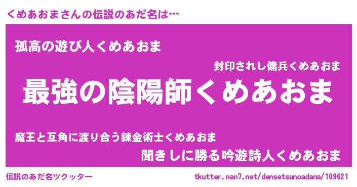 | 肩書あだ名 | 『くめあおま国家主席』『くめあおま先生』 |