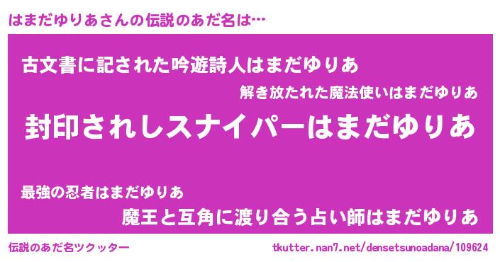 | 肩書あだ名 | 『はまだゆりあ上級大将』 |