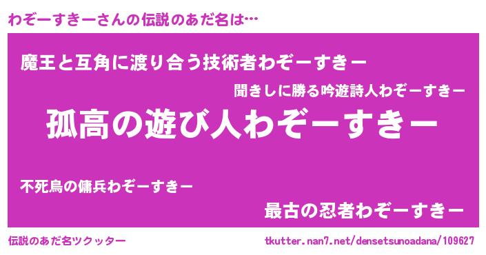 | 意味不明あだ名 | 『自称わぞーすきー』 |